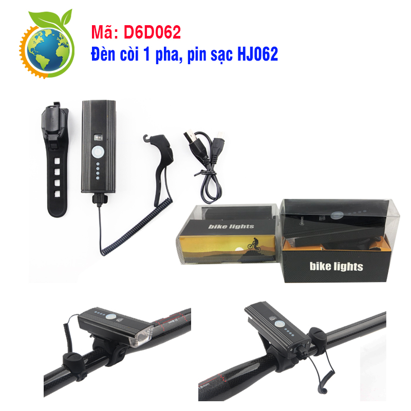 Đèn xe đạp - Đèn 1 pha pin sạc dung lượng 1200MAH, còi nhiều tiếng D6D062