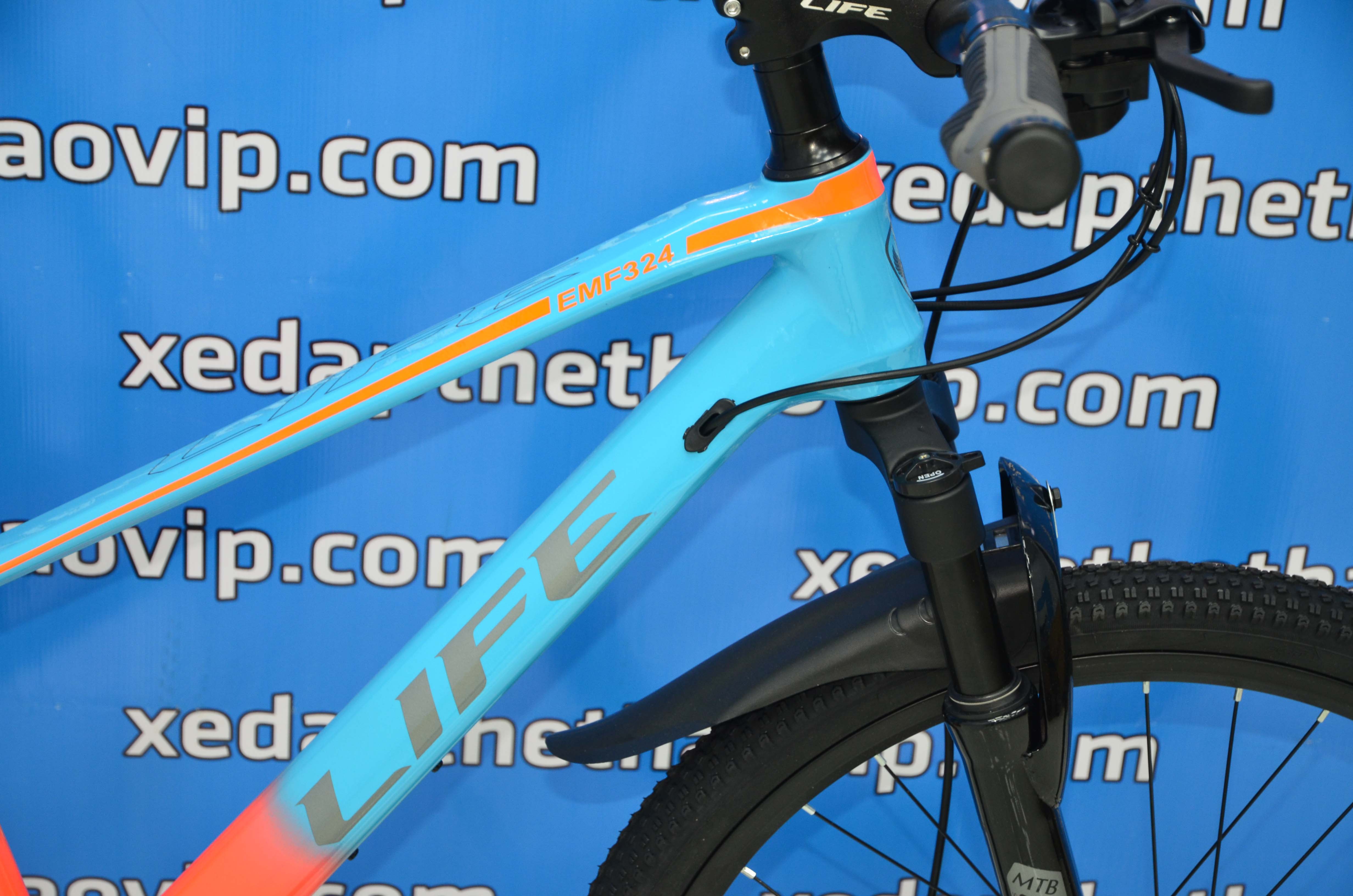 Xe đạp địa hình LIFE EMF324 là xe đạp địa hình khung nhôm ĐÚC đẳng cấp từ hàng xe đạp LIFE đến từ Đài Loan được ưa chuộng hiện nay, xe có thiết kế khỏe khoắn, đẹp mắt, mạnh mẽ.Cùng điểm qua dàn đồ trên xe: Khung nhôm đúc siêu nhẹ, group SHIMANO 24 tốc độ, vành nhôm 2 lớp, tay lái, cổ lái, cọc yên nhôm, phuộc nhún có khóa hành trình. Hãy tận hưởng cảm giác trải nghiệm với chiếc xe địa hình êm mượt LIFE EMF324 cùng mức giá rất ưu đãi. Không chỉ là giá tốt, chất lượng cao, thiết kế theo tiêu chuẩn Châu Âu, kiểu dáng bắt mắt, màu sắc đa dạng.