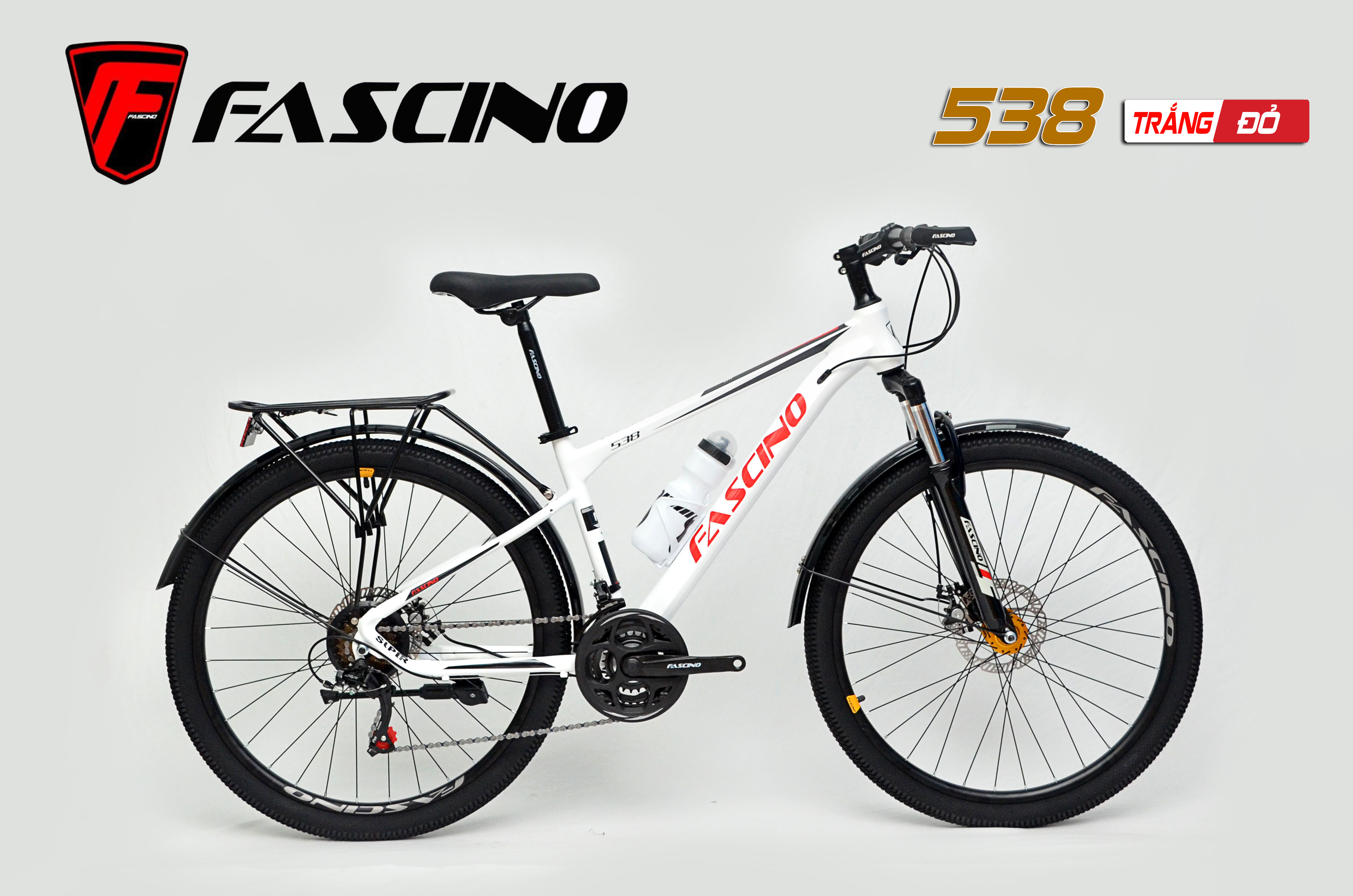 Xe đạp địa hình FASCINO 538 xe đạp thể thao nhập khẩu với cấu hình Khung thép cường lực không mối hàn, sơn tĩnh điện. Bộ truyền động SHIMANO 3x7 tốc độ chĩnh hãng đạp xe nhẹ, hoạt động bền bỉ. FASCINO 538 hoàn toàn phù hợp để tập luyện thể dục thể thao nâng cao sức khỏe hay là phương tiện đi học, đi làm rất tiết kiệm và tăng cường sức khỏe là sự lựa chọn hàng đầu với mức giá cực kỳ ưu đãi.
