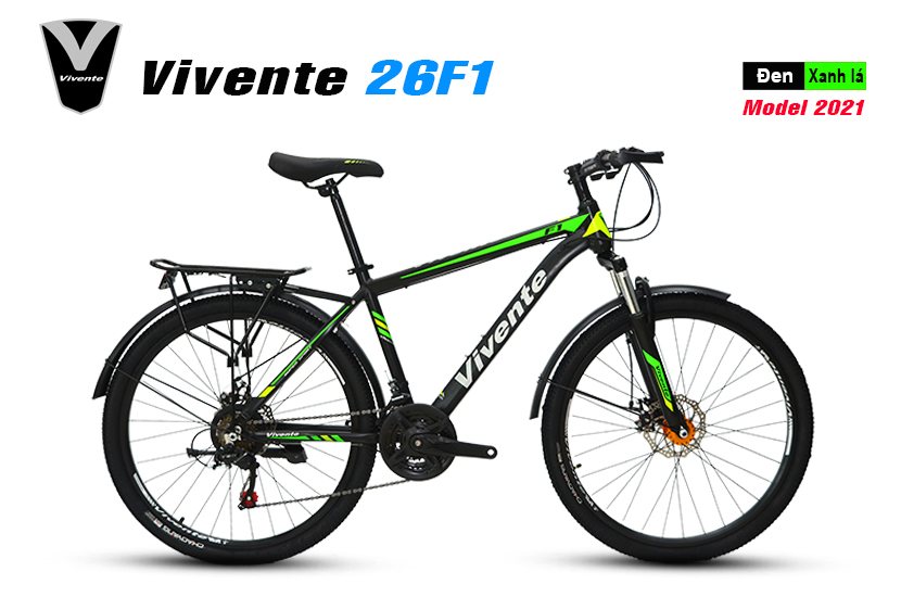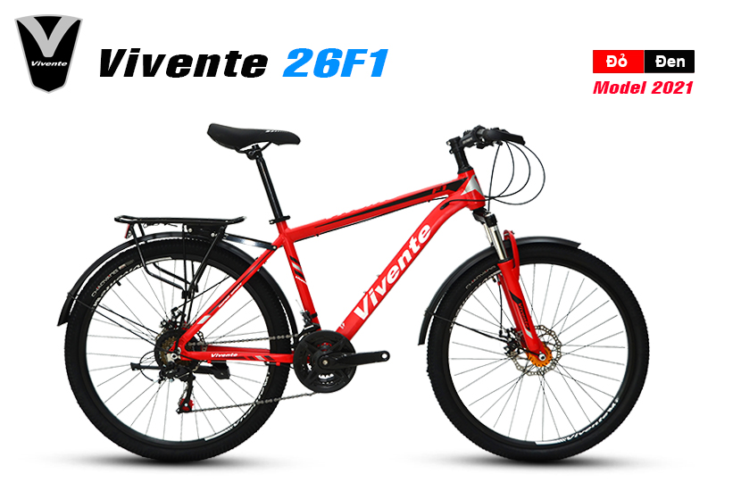 Xe đạp địa hình VIVENTE 26F1 model 2021. Chiếc xe đạp thể thao nhập khẩu nguyên chiếc, chất lượng cao, mẫu mã đẹp, màu sắc đa dạng. Với thiết kế khung Nhôm chắc chắn dẻo dai, kết hợp bộ truyền động 21 tốc độ, cùng cặp bánh cỡ 26 inch. Chiếc xe này hoàn toàn phù hợp để tập luyện thể thao hay với các bạn học sinh cấp 3, là phương tiện đi học rất tiết kiệm và tăng cường sức khỏe.