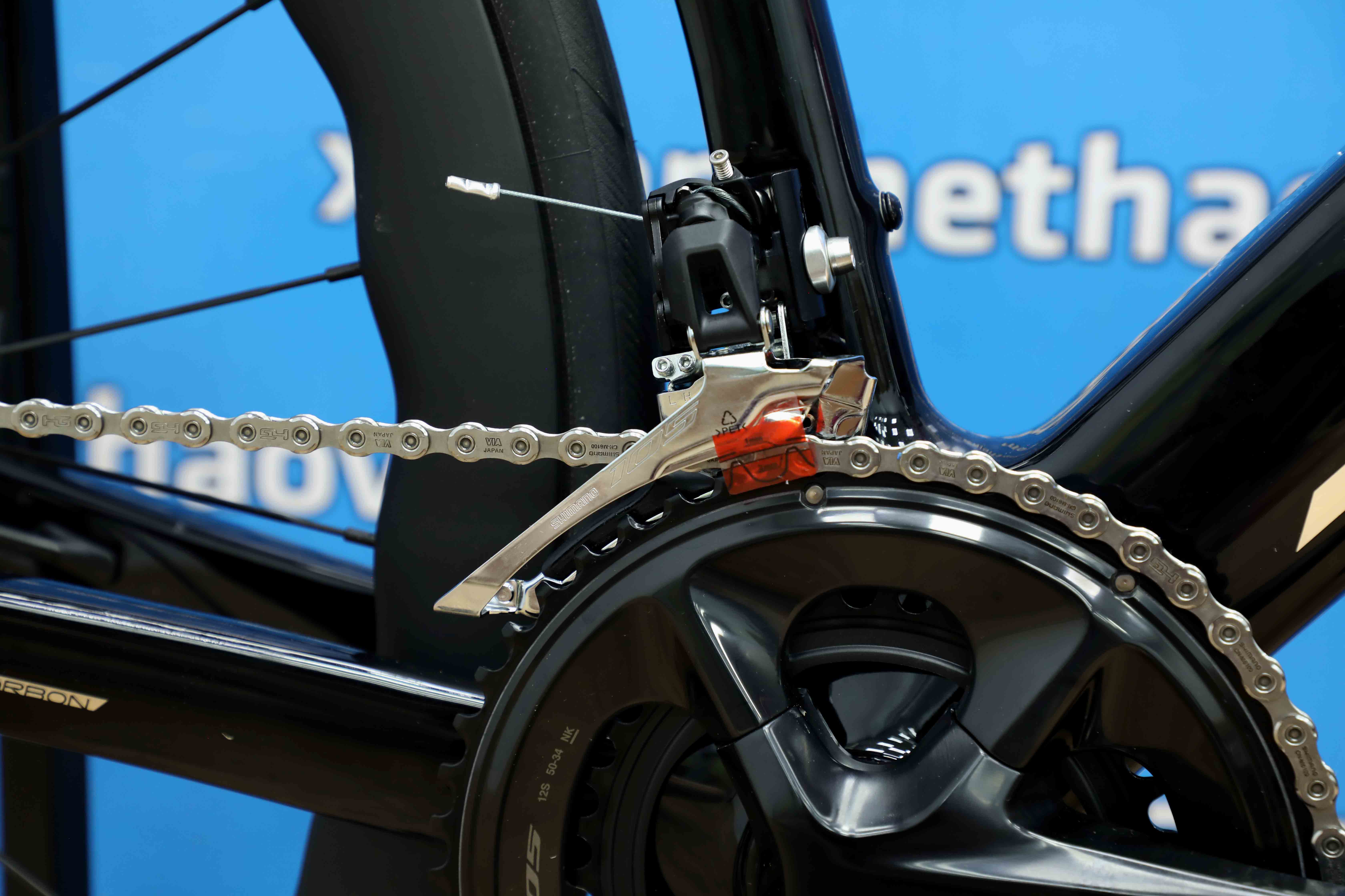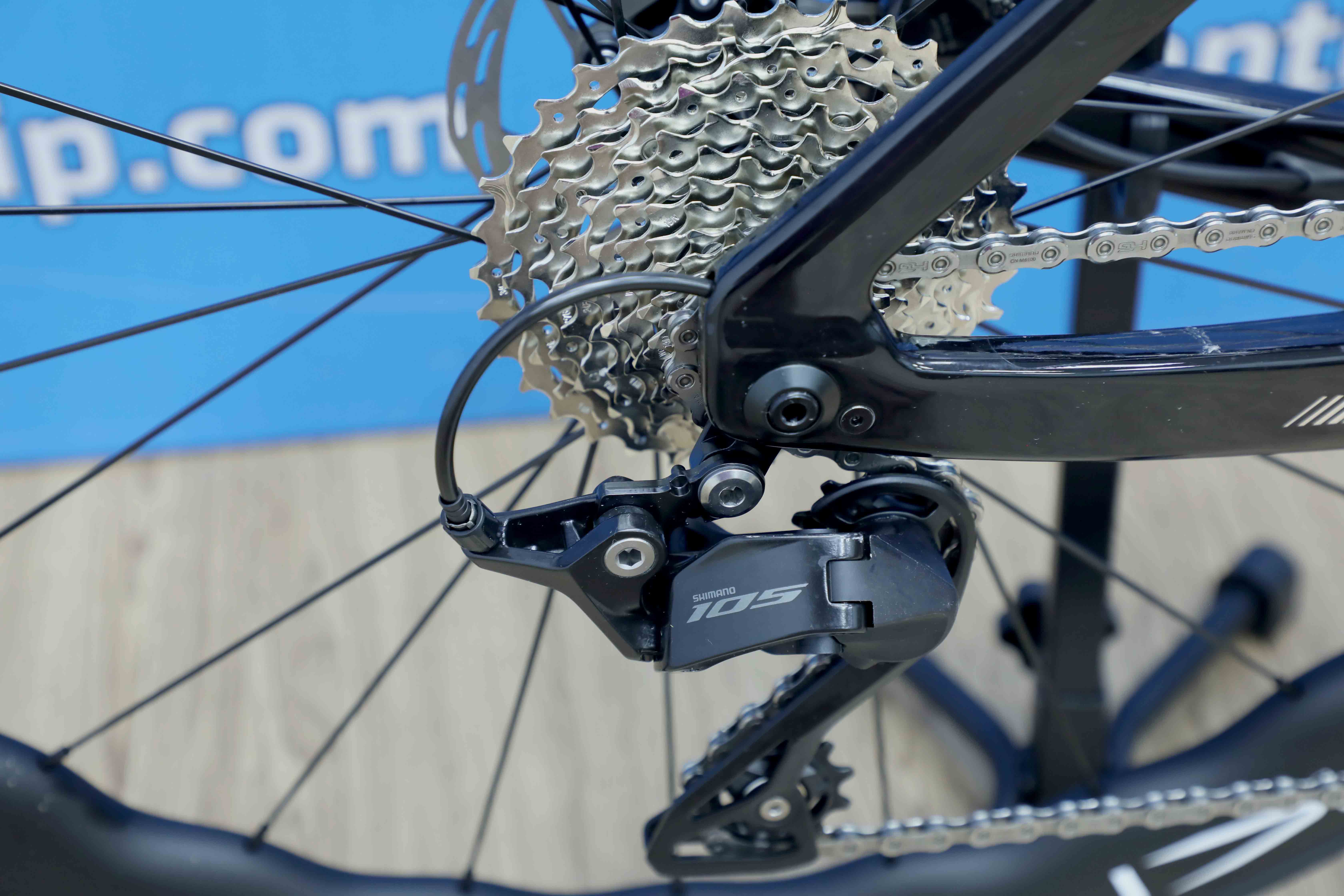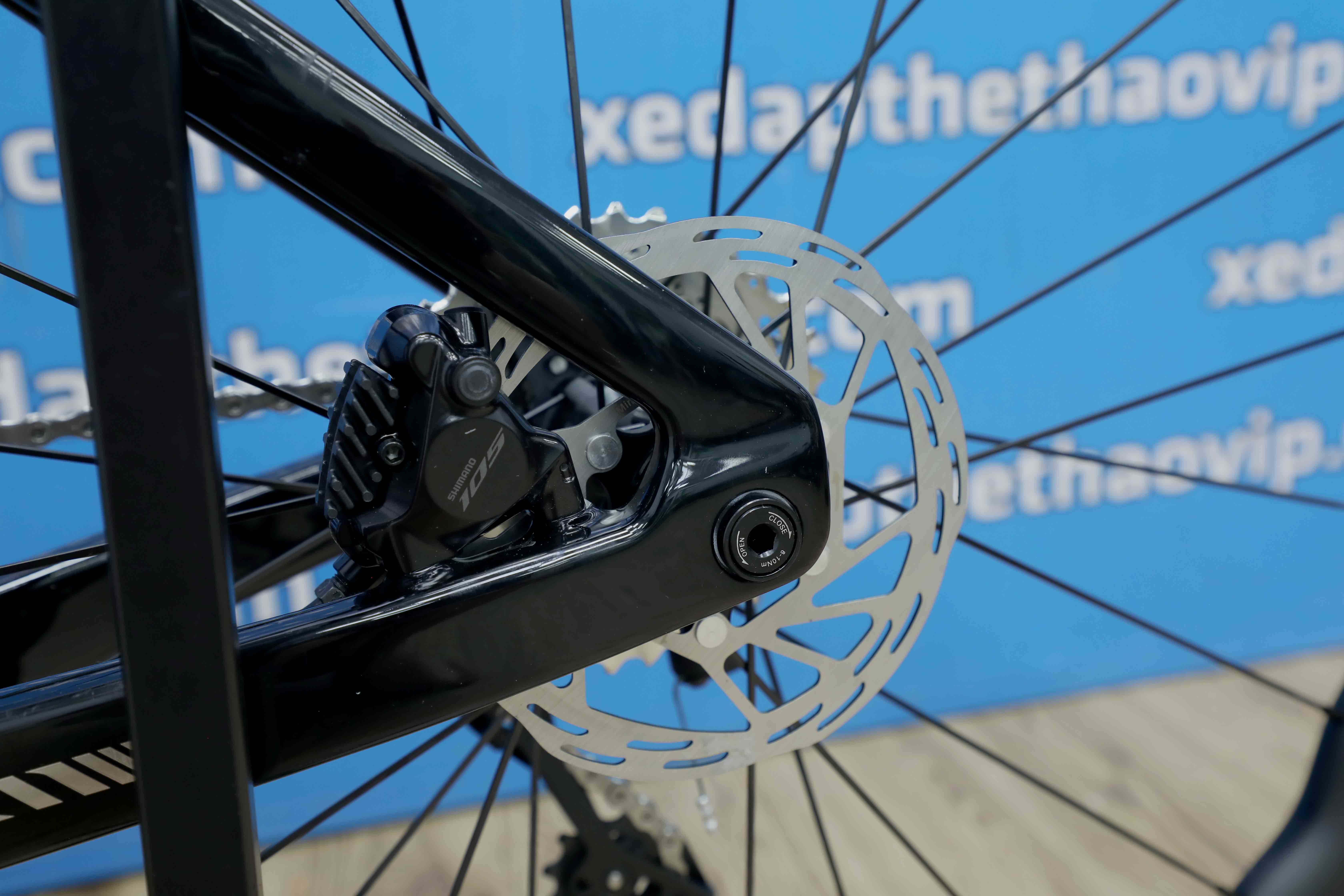 Xe được trang bị groupset SHIMANO 105 R7120 – dòng cấu hình cơ cao cấp nhất của SHIMANO, mang đến trải nghiệm sang số mượt mà, ổn định và chính xác.