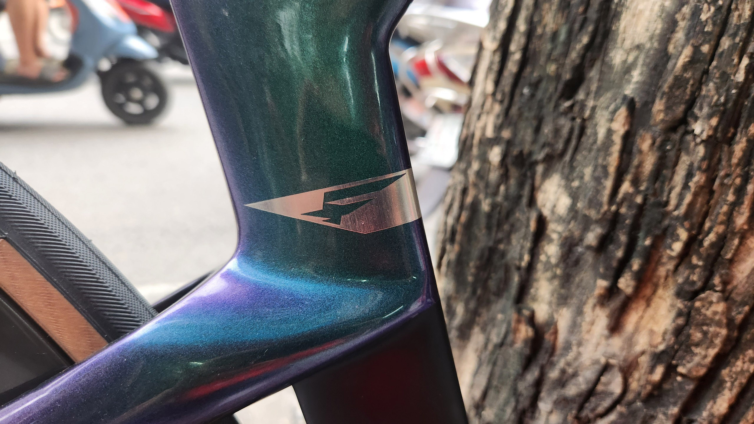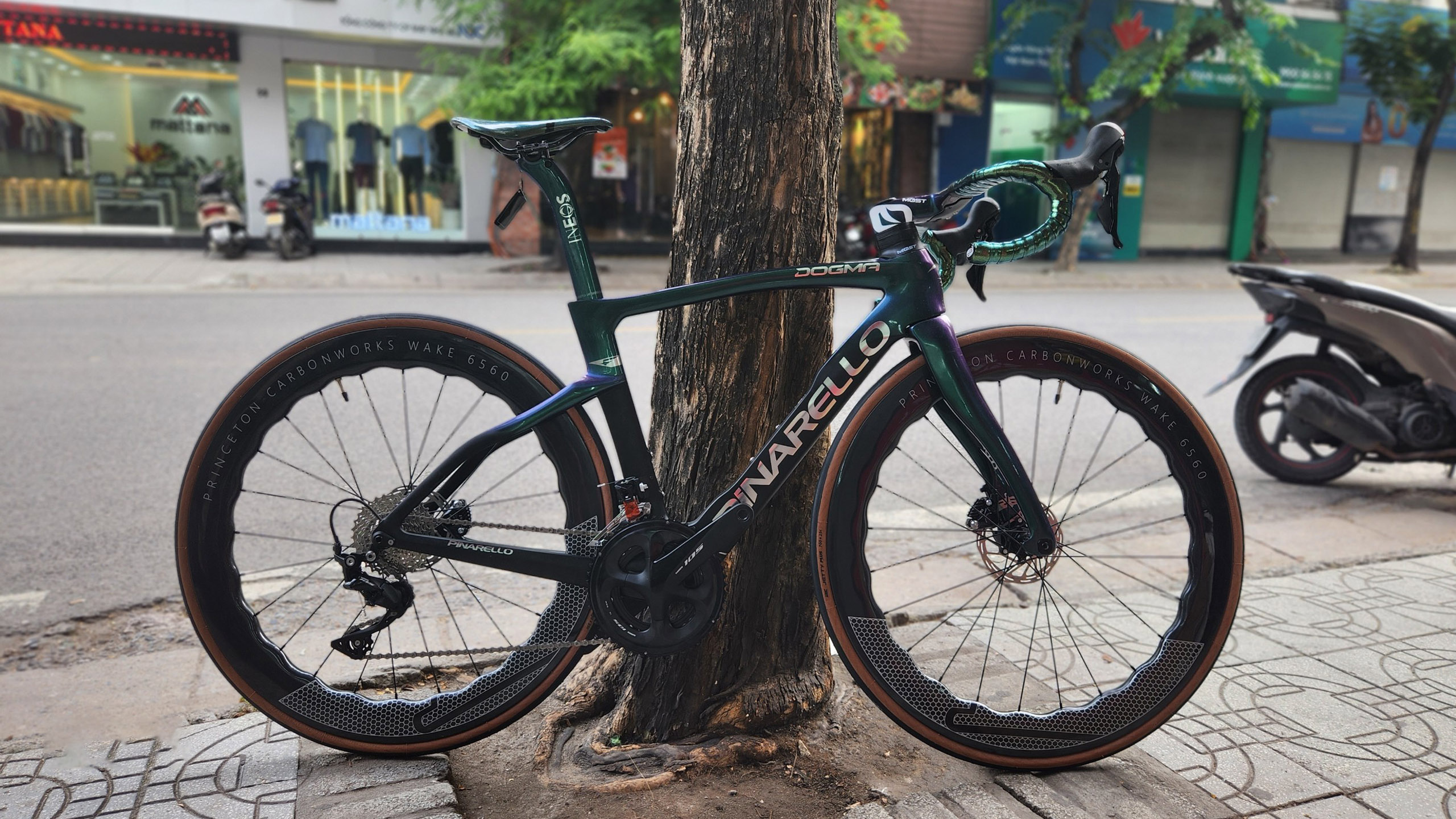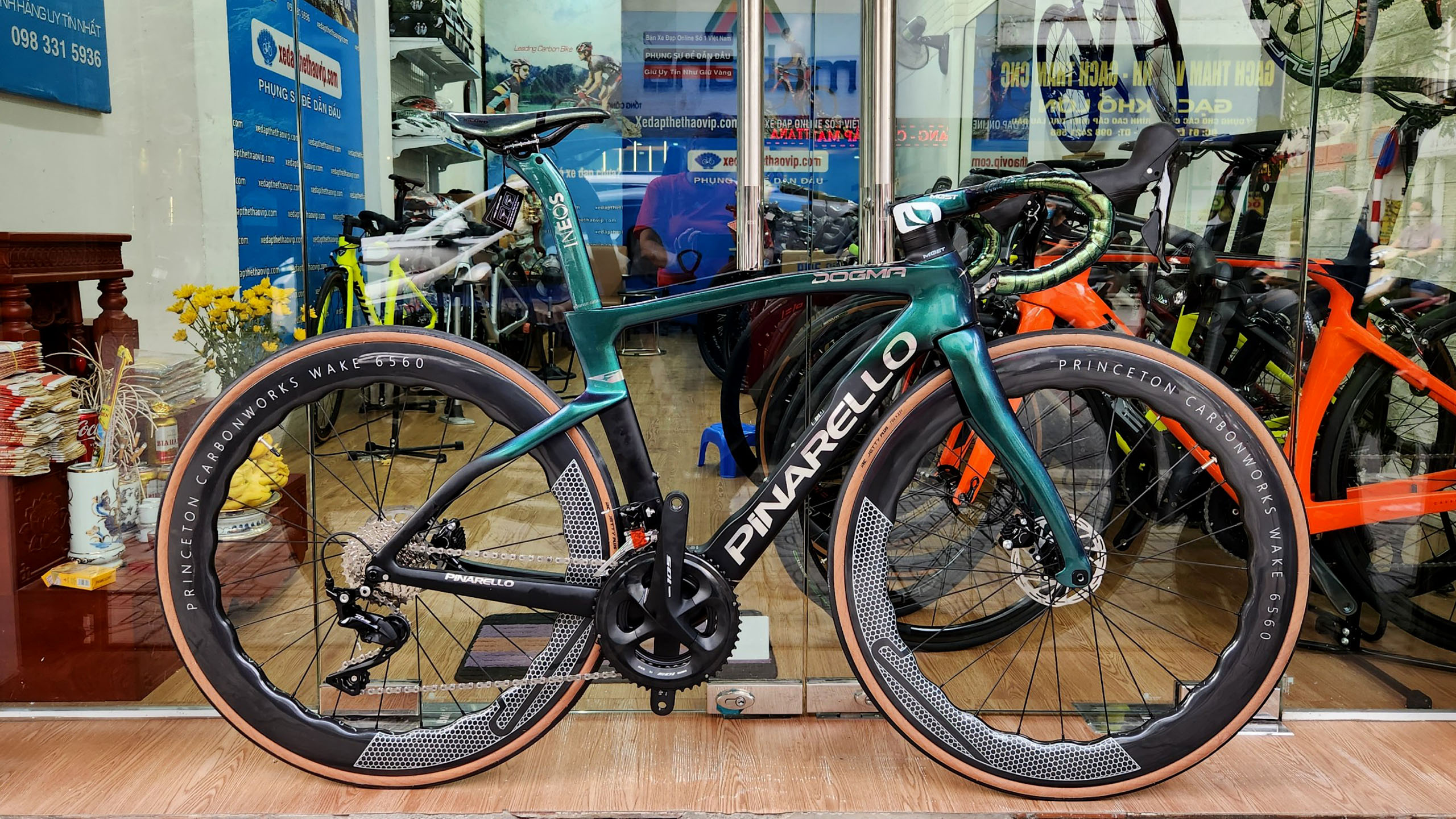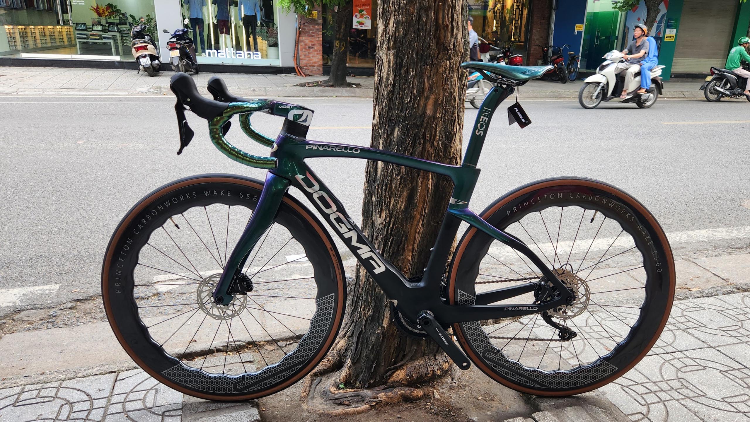 HÌNH ẢNH CHI TIẾT XE ĐẠP ĐUA PINA F14 màu xanh lục bảo đổi màu R7020
