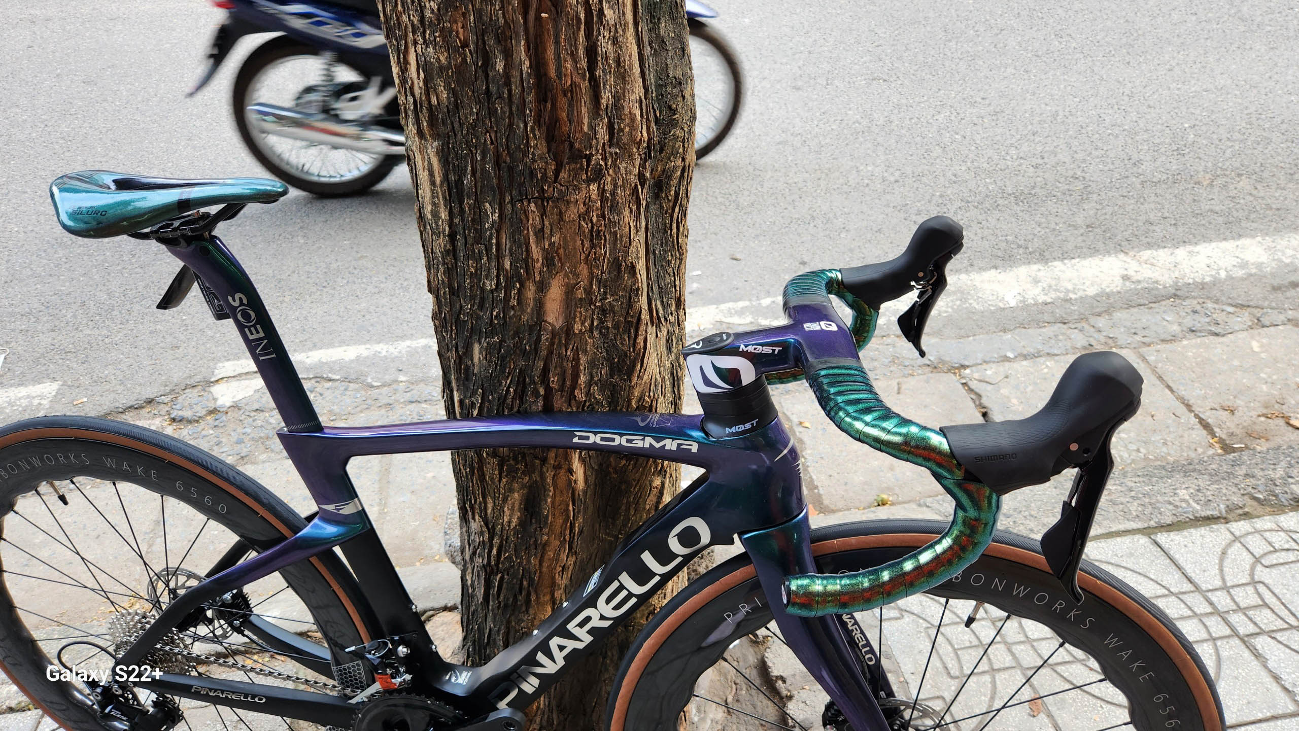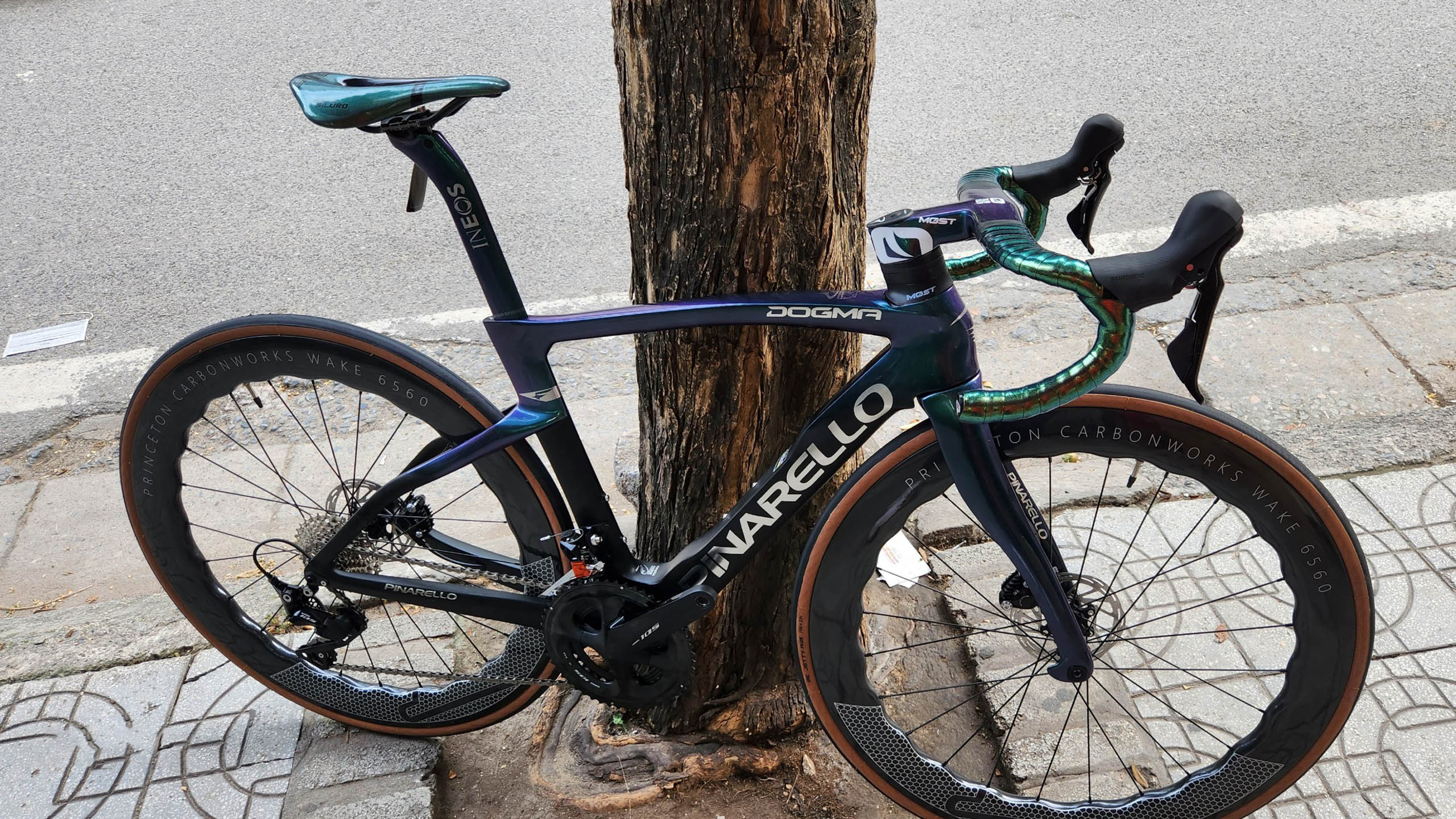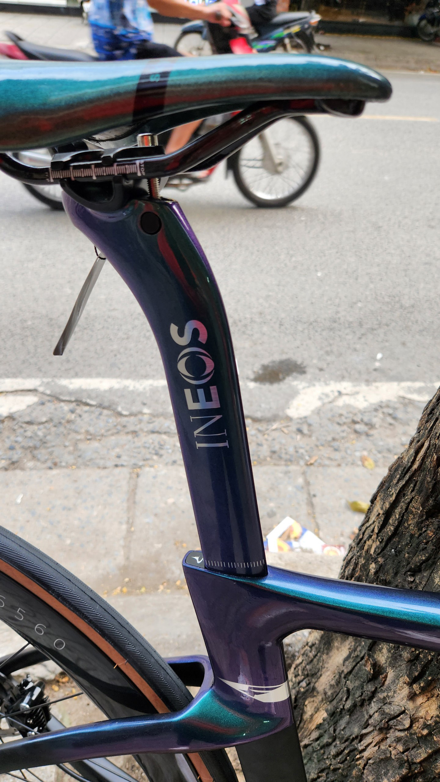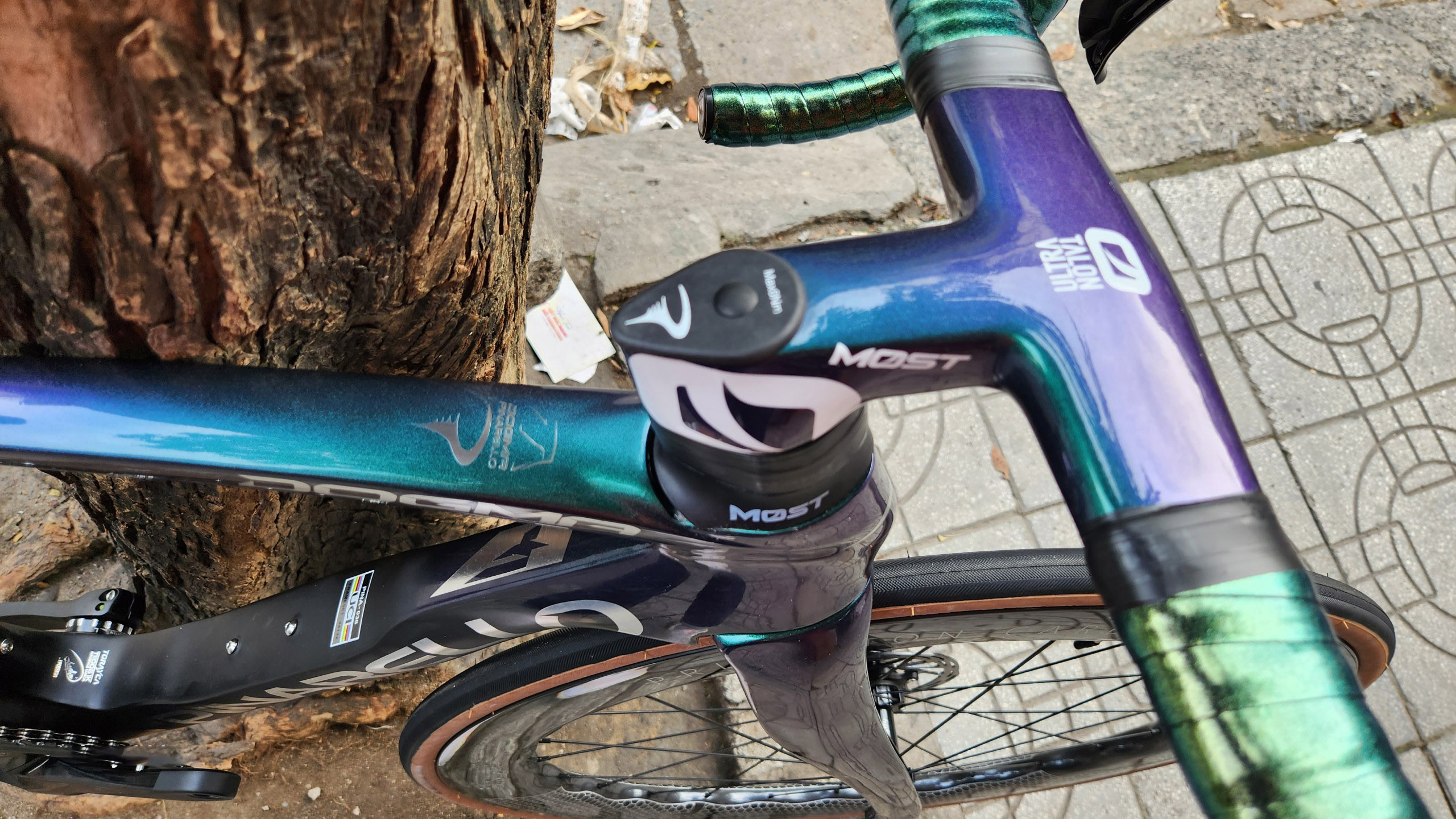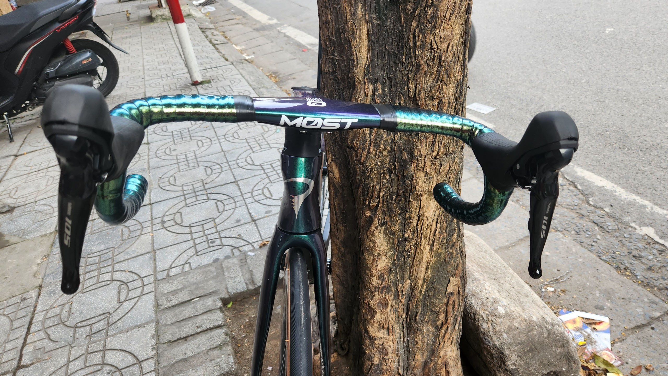 HÌNH ẢNH CHI TIẾT XE ĐẠP ĐUA PINA F14 màu xanh lục bảo đổi màu R7020