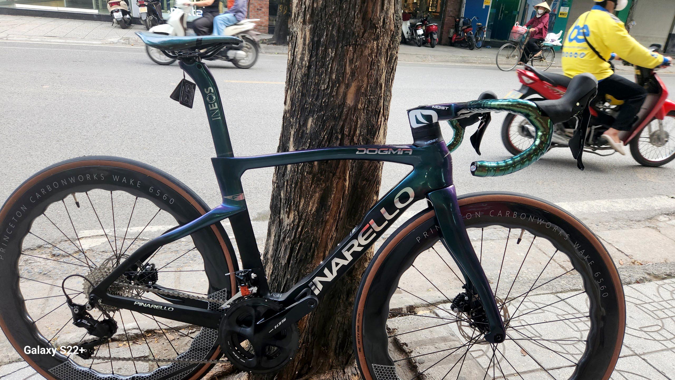 VIDEO REVIEW CHI TIẾT CẤU HÌNH XE ĐẠP ĐUA PINA F14 xanh lá đổi màu, Shimano R7020