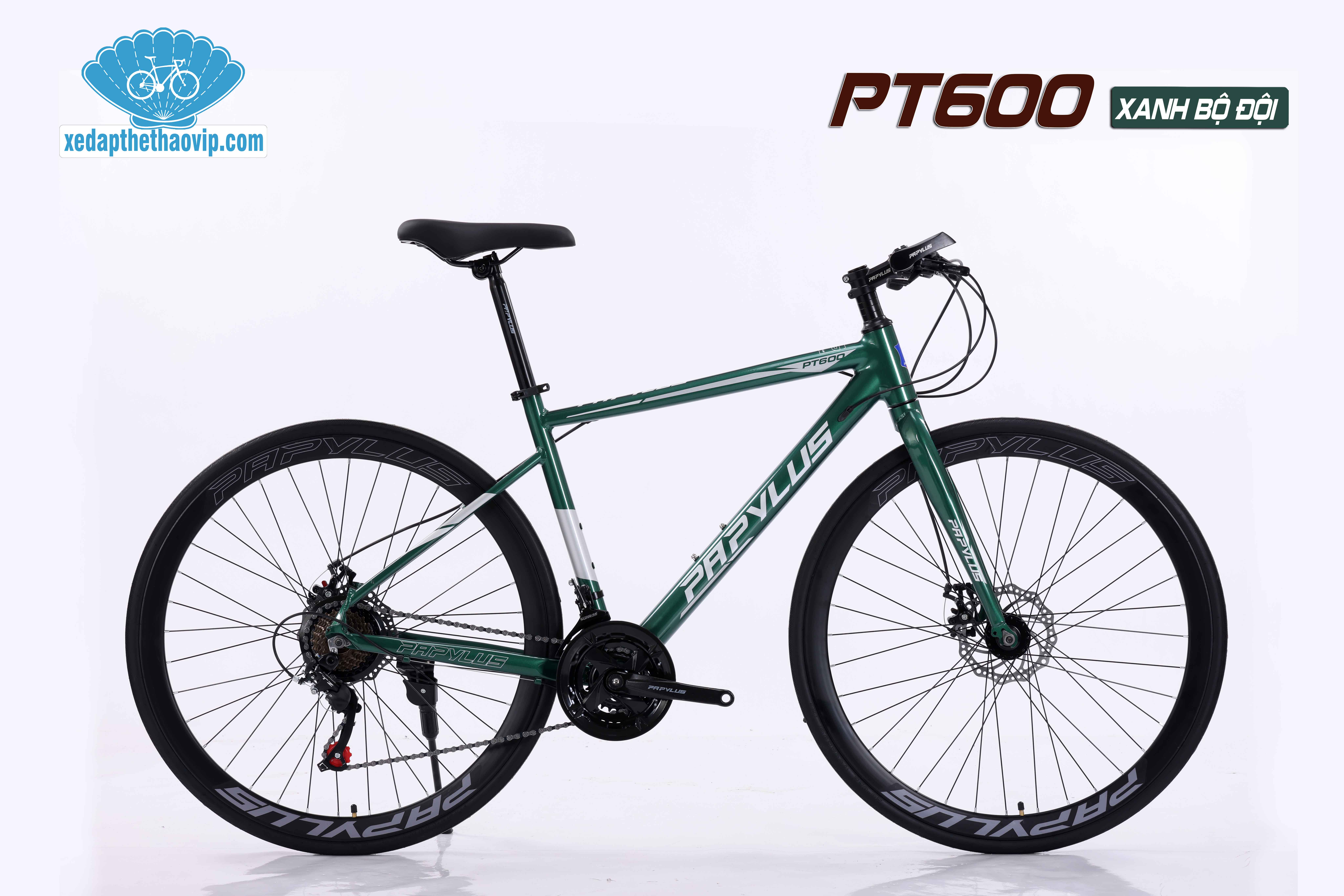 PAPYLUS PT600 – mẫu xe đạp touring đậm chất thời trang với thiết kế hiện đại, sang trọng. Trang bị khung nhôm siêu nhẹ sơn tĩnh điện, dây cáp âm khung tinh tế, phanh đĩa an toàn và bộ truyền động 3x7 tốc độ linh hoạt. Giá cả dễ tiếp cận, chất lượng vượt mong đợi – xứng đáng là “chiến mã” đồng hành cùng anh/chị trên mọi cung đường.